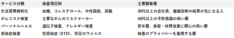 一般的な検査項目ではなく、特定のニーズを持つ層に深く刺さるサービスを開発します。