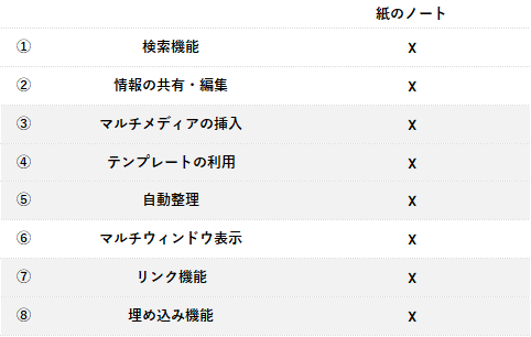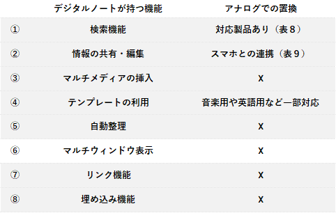 この項目の中で、デジタルノートにできて、アナログにできない項目だけを抽出します。