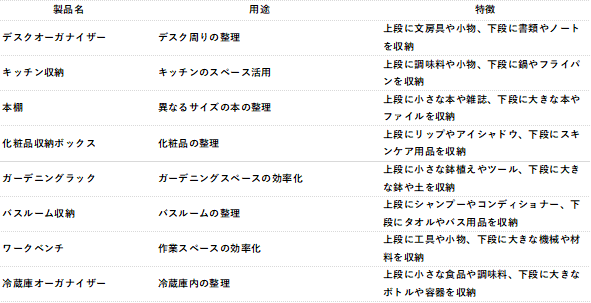 日常生活に欠かせないものばかりですが、すべてに共通しているのは、「上下で分割」し、異なるモノをおいている点。