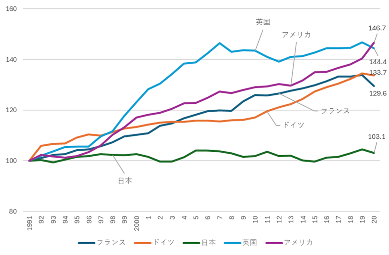 図8 一人当たりの実質賃金(各国との比較)