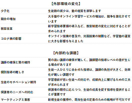 表1 学習塾が抱える問題点