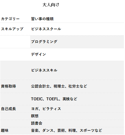 表3 大人向けの習い事